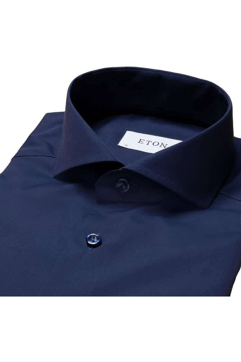 Stil und Komfort mit Tradition. Eton Slim Fit Hemd mit einem Haifischkragen, in der Farbe navy – Einfarbig.