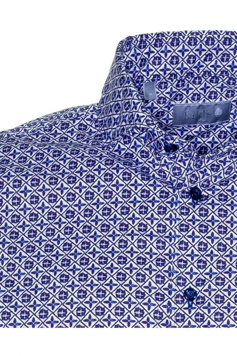 Ein hochwertiges fakts Slim Fit Hemd in der Farbe blau, Gemustert. fakts ist eine junge Marke aus Düsseldorf, die hochwertige Hemden herstellt, die in Design, Passform und Qualität mit den Hemden von Jacques Britt vergleichbar sind.
