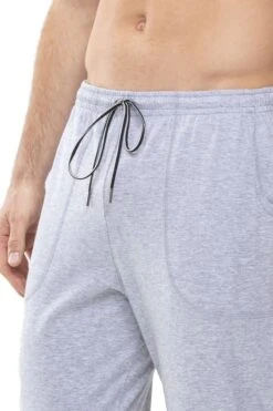Praktische Mey Jogginghose in der Farbe hellgrau, Einfarbig. Die Herren Hosen von Mey zeichnen sich durch perfekte Passformen und hohen Tragekomfort aus. Das Material dieser Jogginghose ist 64% Modal / 31% Baumwolle / 5% Elasthan.