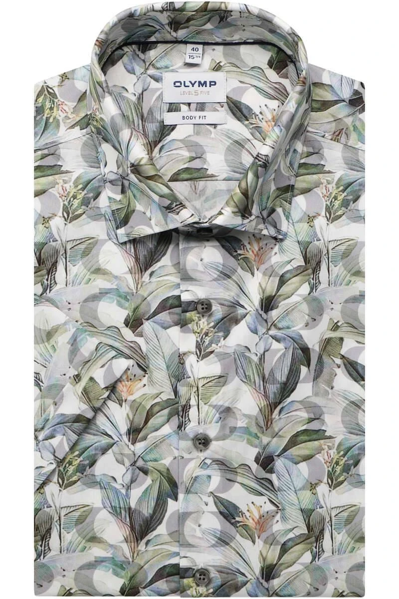 „OLYMP Level Five Body Fit Hemd grün/weiss, Gemustert“