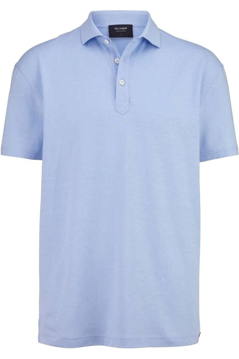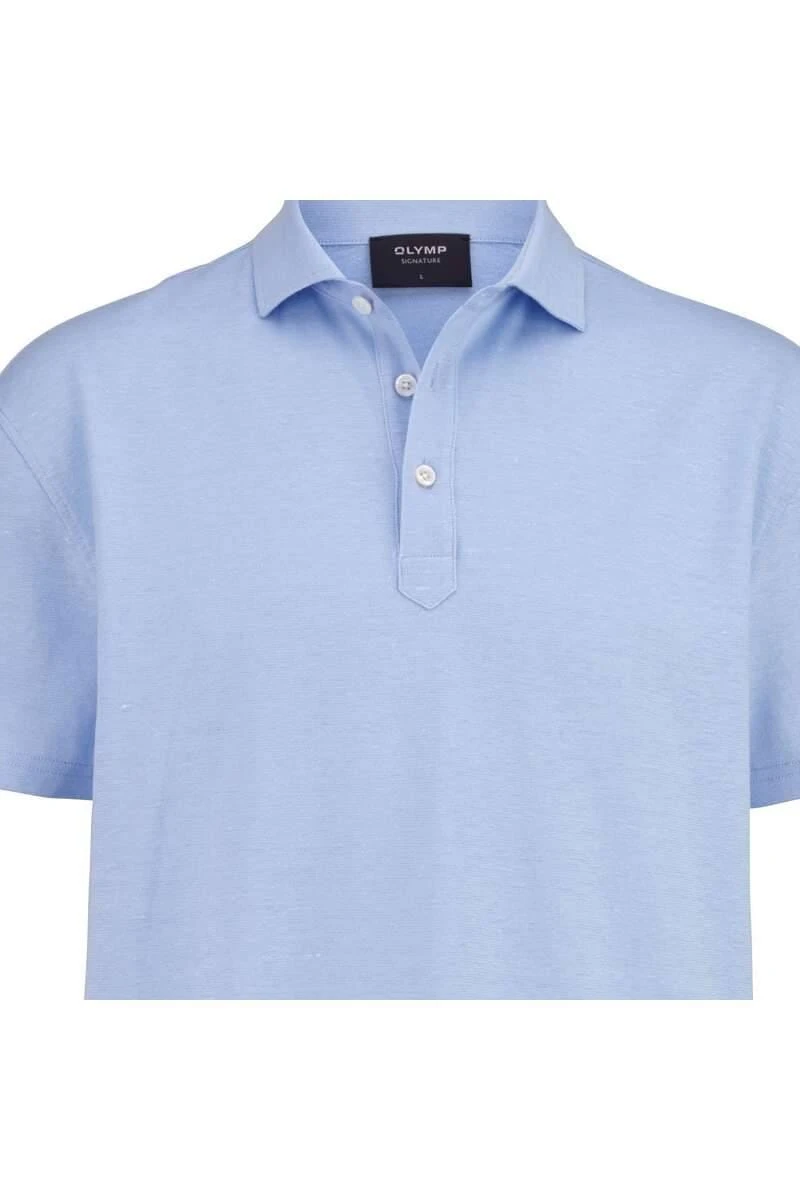 Premium OLYMP SIGNATURE Tailored Fit Poloshirt in der Farbe bleu, Meliert. Ein tolles, vielseitig kombinierbares Poloshirt von OLYMP SIGNATURE, das sehr angenehm zu tragen ist. Das Material ist ein feines Polo-Gewebe aus 50% Baumwolle / 50% Hanf.