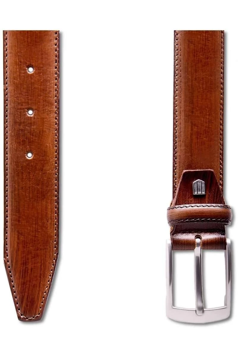 „Profuomo Herren Gürtel aus Echt Leder 3,5 cm cognac, Handpoliert“