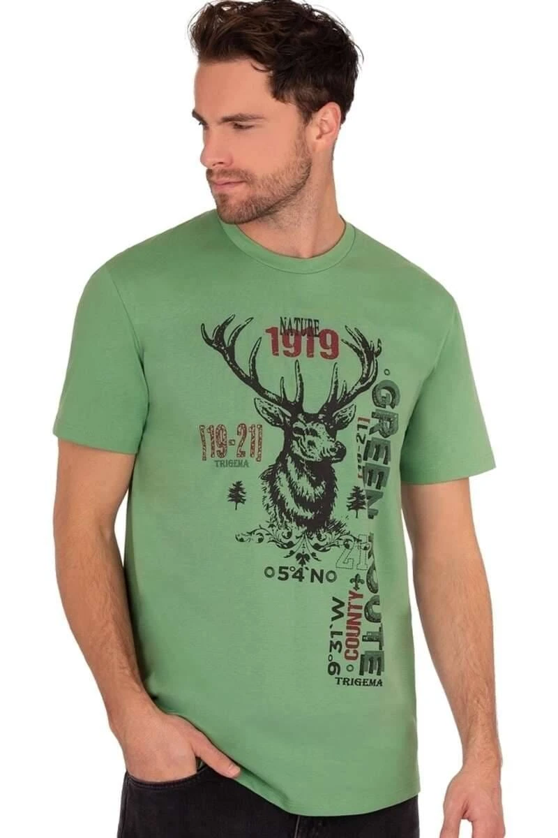 Das TRIGEMA T-Shirt in der Farbe farn, bedruckt für Männer.